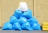 青の半透明ゴミ袋9枚と白の半透明ゴミ袋1枚の10枚入り。