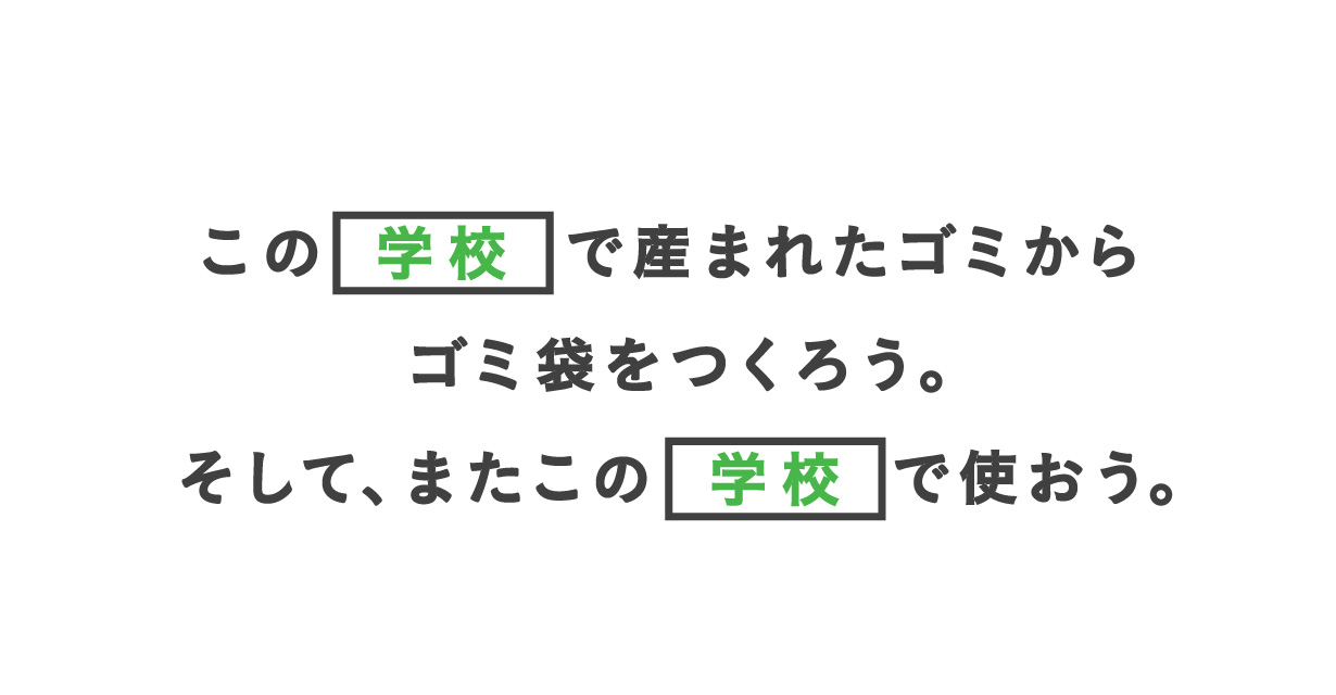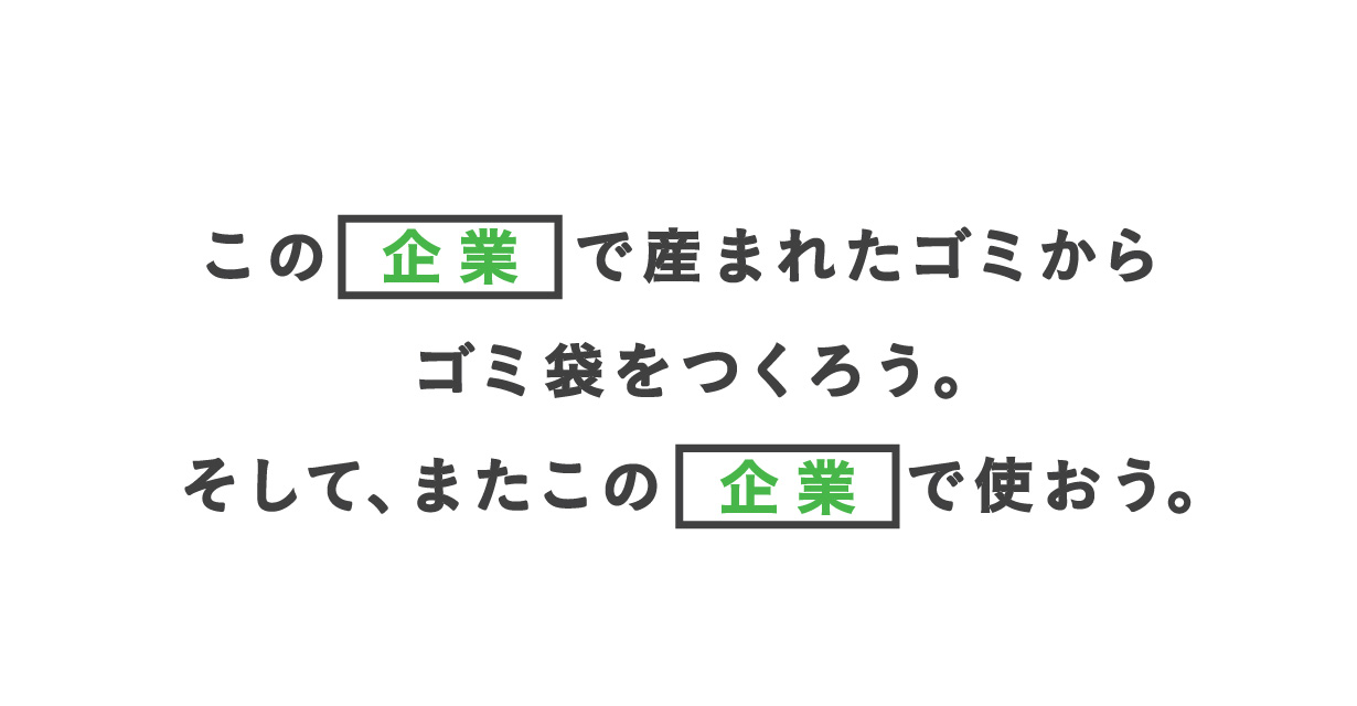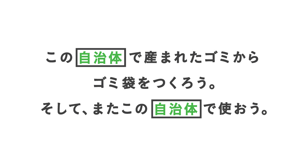 自治体内で出たゴミからゴミ袋をつくり、再度、その自治体で利用しようというプロジェクトです。