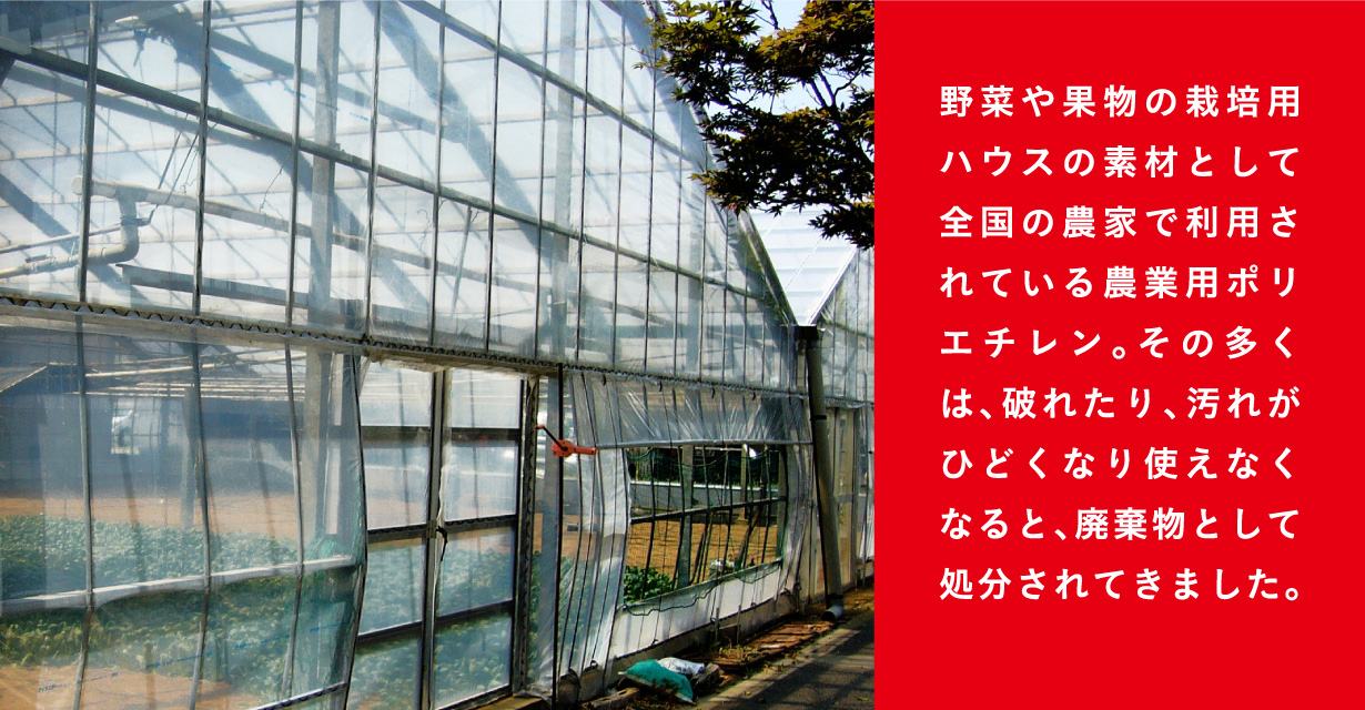 野菜や果実の栽培用ハウスの素材として全国の農家で利用されている農業用ポリエチレン。