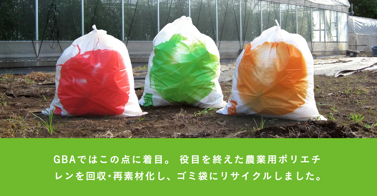 GBAではこの点に着目。役目を終えた農業用ポリエチレンを回収・再素材化し、