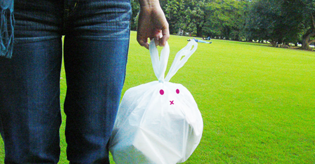 行楽地や公園から、ゴミ持ち帰ってますか?自分の出したゴミには責任を持たなくちゃ、という時代ですからね。でもどうせなら仕方なくじゃなくて、楽しく持って帰ろうよ! Love it!君マナーバッグは、把手を結ぶとウサギに大変身のMYゴミ持ち帰り袋。ゴミは家までちゃんと連れて帰ってあげてくださいね。