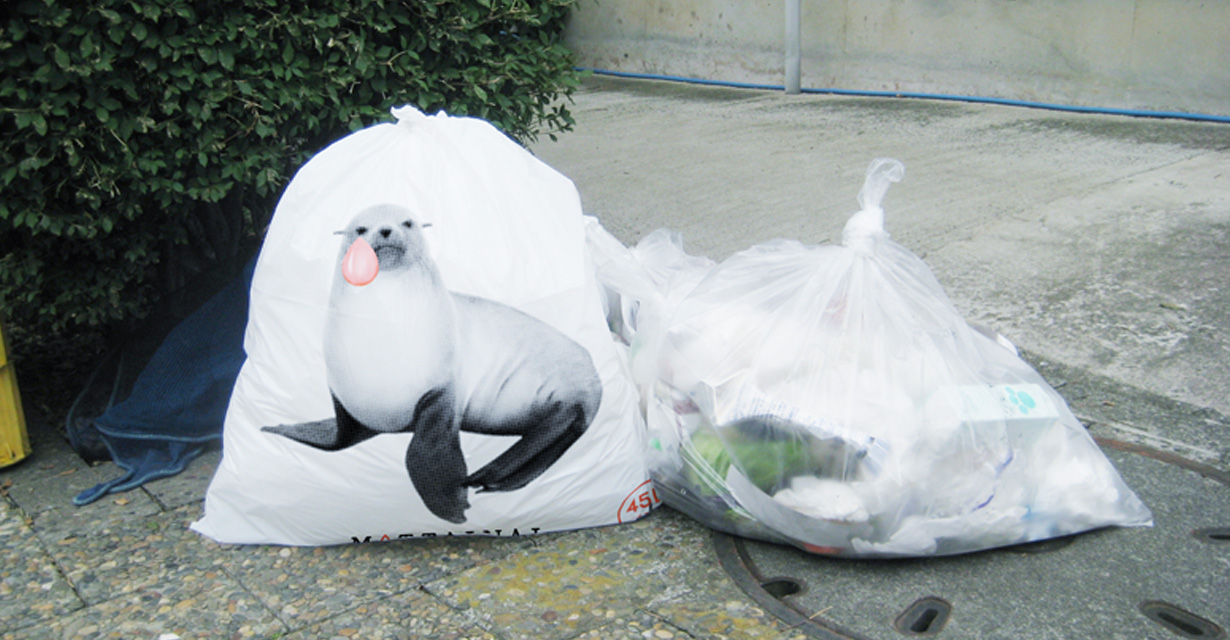 This garbage bag is created from a collaboration with